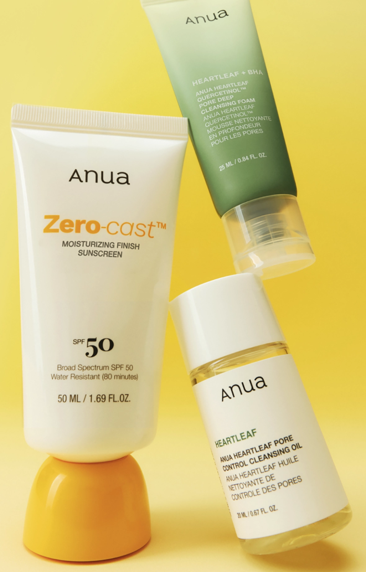 Anua Sun-Ready Travel Kit, Zero-Cast Sunscreen & Cleansing oil & Face Wash. Korean Sunscreen with Mini Size Double Cleansing routine ,Korean Skincare Set