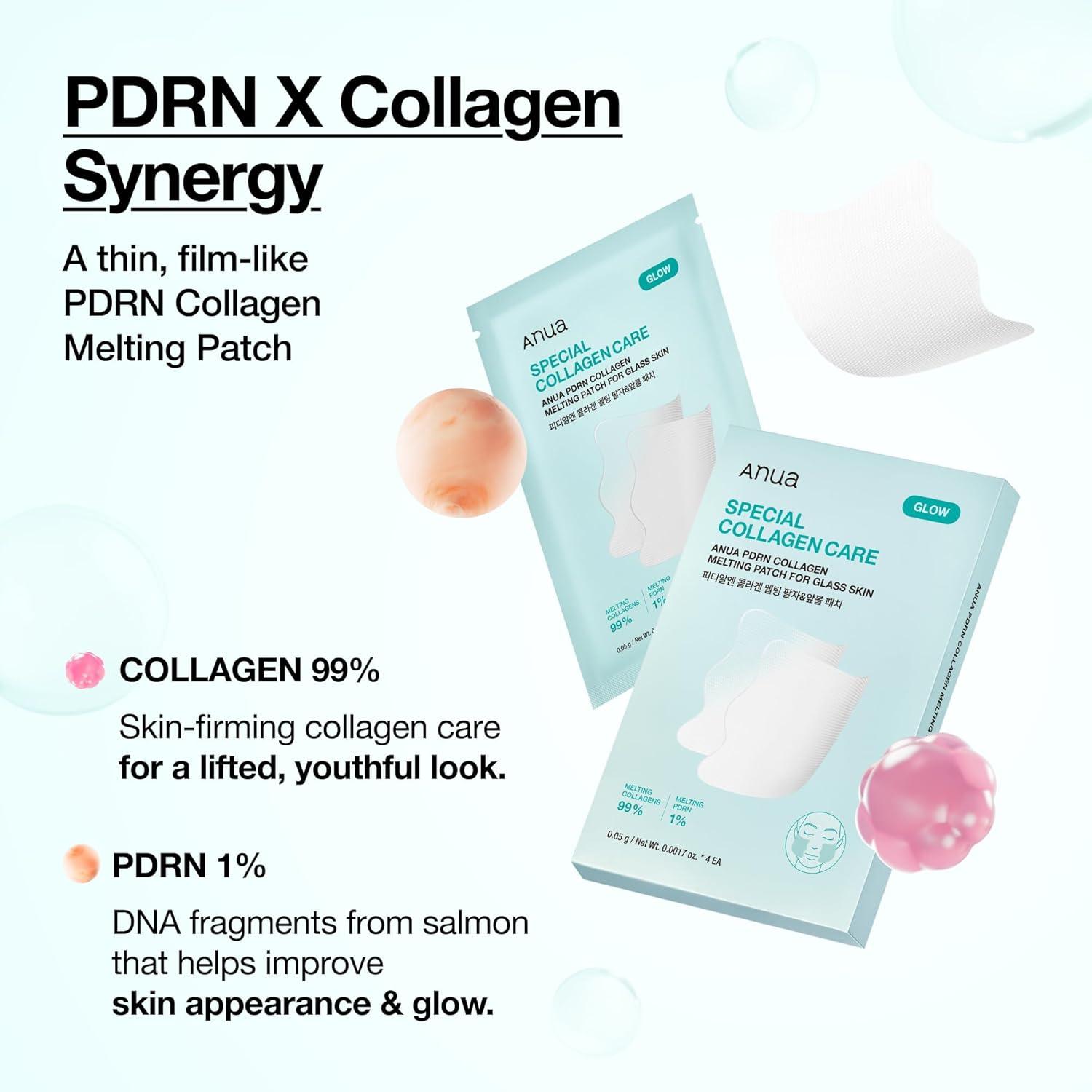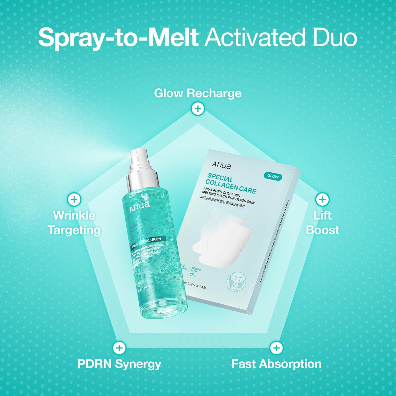 [How To Use] After cleansing, prep with ANUA PDRN Hyaluronic Capsule Mist → remove protective film and apply patch with the white collagen side facing skin (align to smile lines) → spray the PDRN mist generously to activate/melt collagen into skin (mesh remains) → peel off mesh, gently pat in, and finish with moisturizer; keep hands dry during application to prevent early melting.